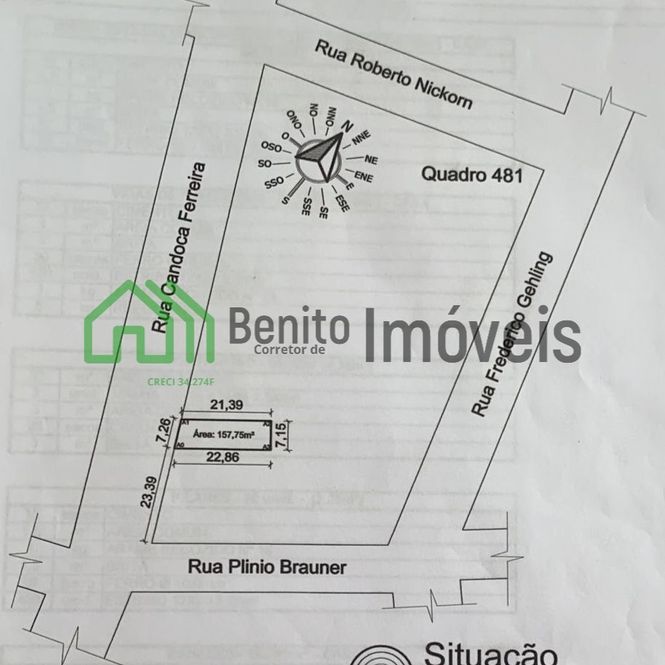 - Terreno localizado na Rua Candoca Ferreira entre as ruas Roberto Nickorn e Plinio Brauner;