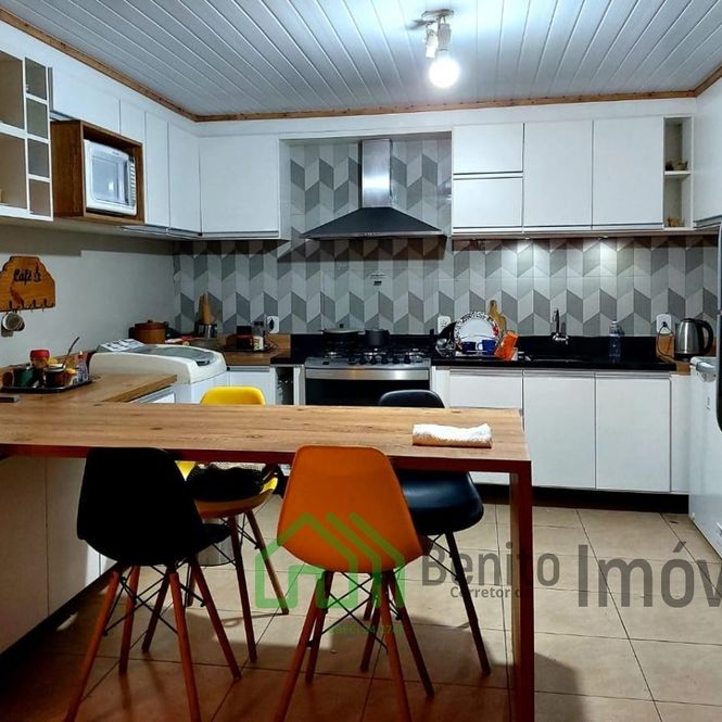Casa em alvenaria, contendo 2 dormitórios, 2 salas, banheiro, lareira, churrasqueira, escritório, abrigo para carro, terreno medindo 14,00 x 56,00m.