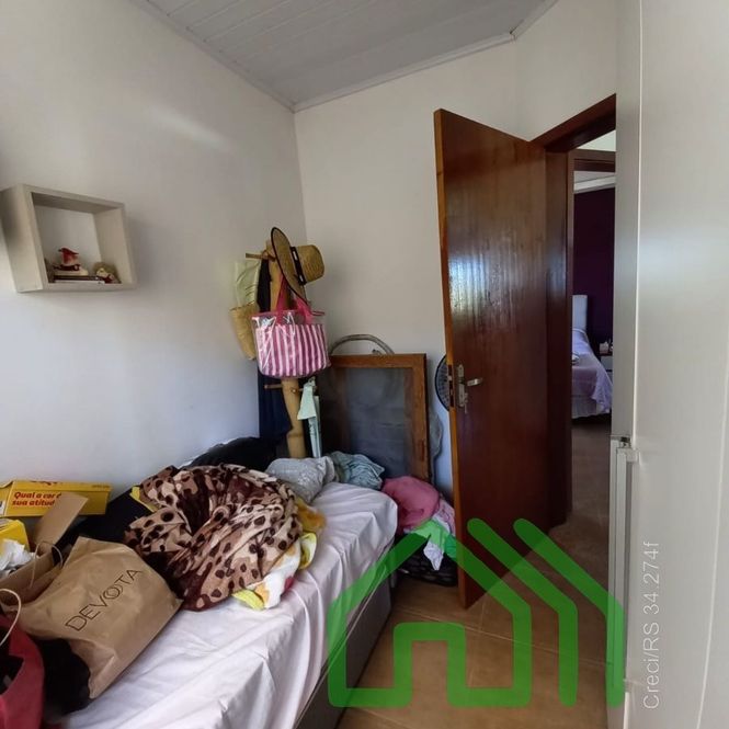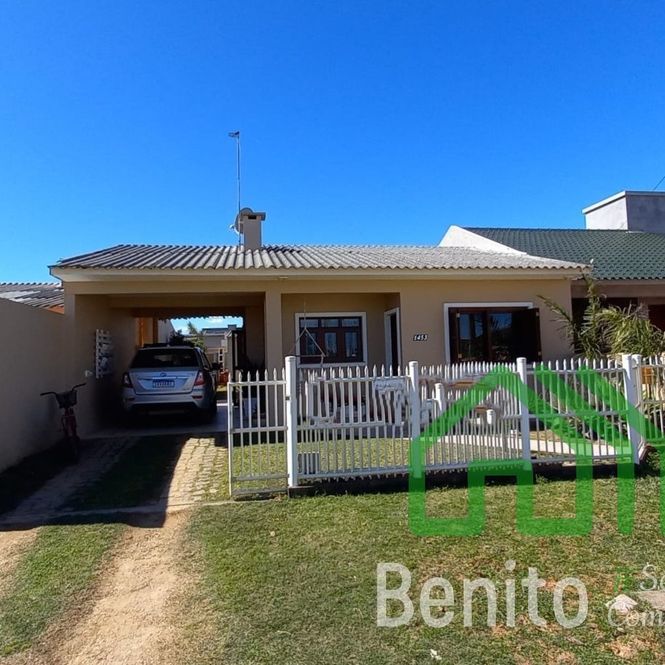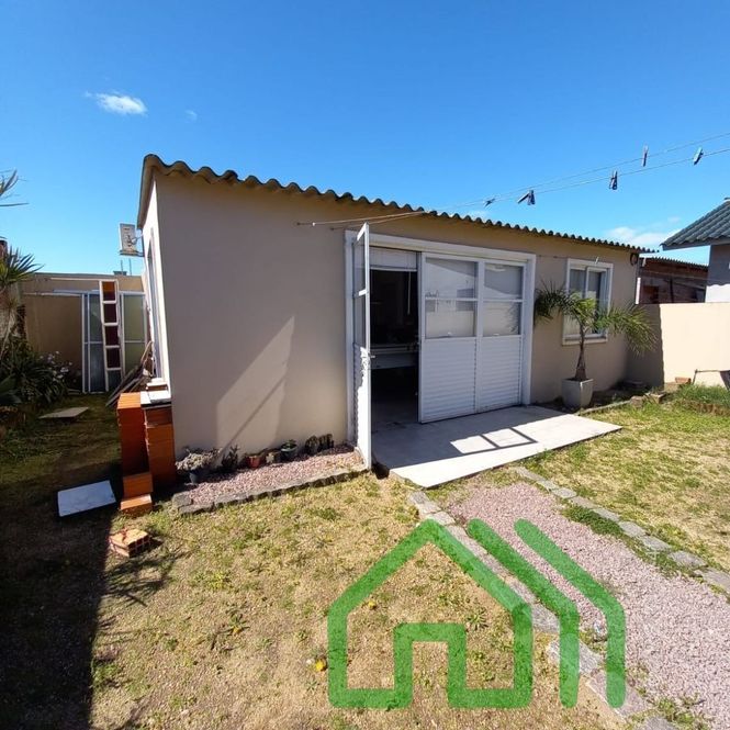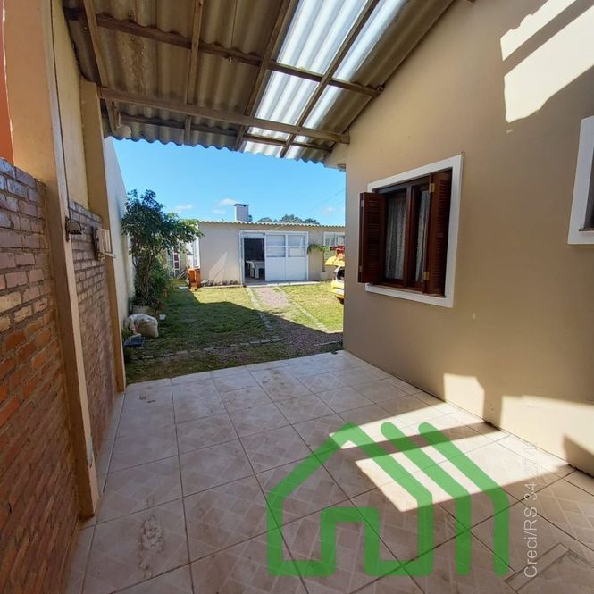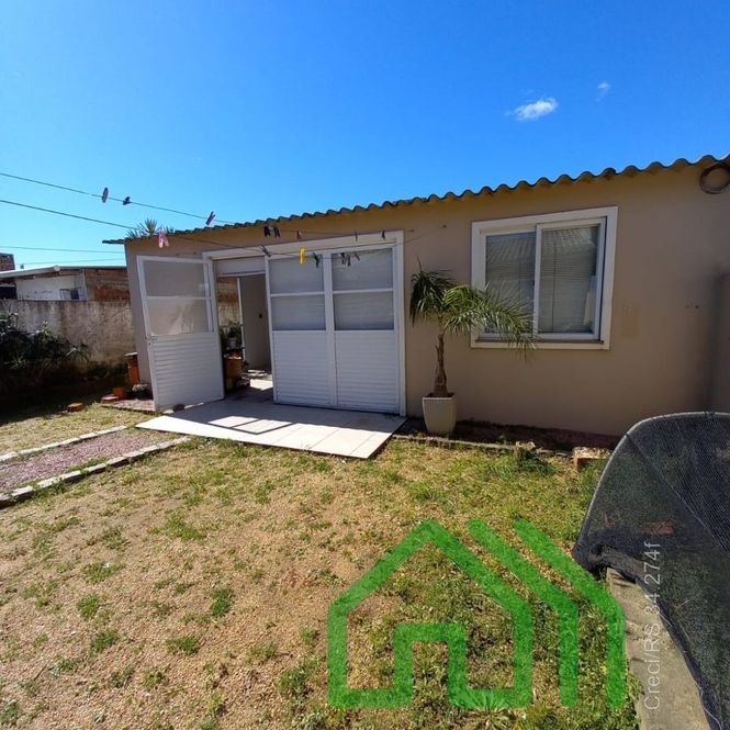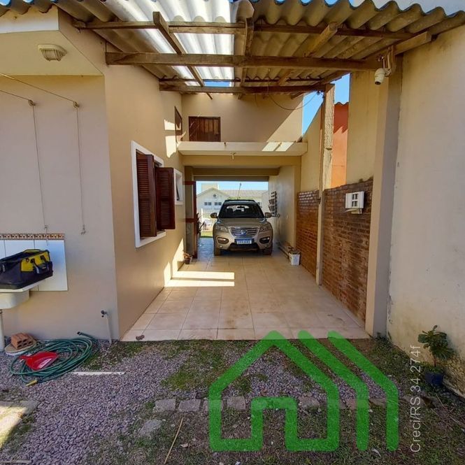 CASA COM 2 DORMITÓRIOS, SALA DE ESTAR, COZINHA, BANHEIRO E ABRIGO PARA CARRO. NOS FUNDOS, PEÇA COM CHURRASQUEIRA, 1 DORMITÓRIO E BANHEIRO.